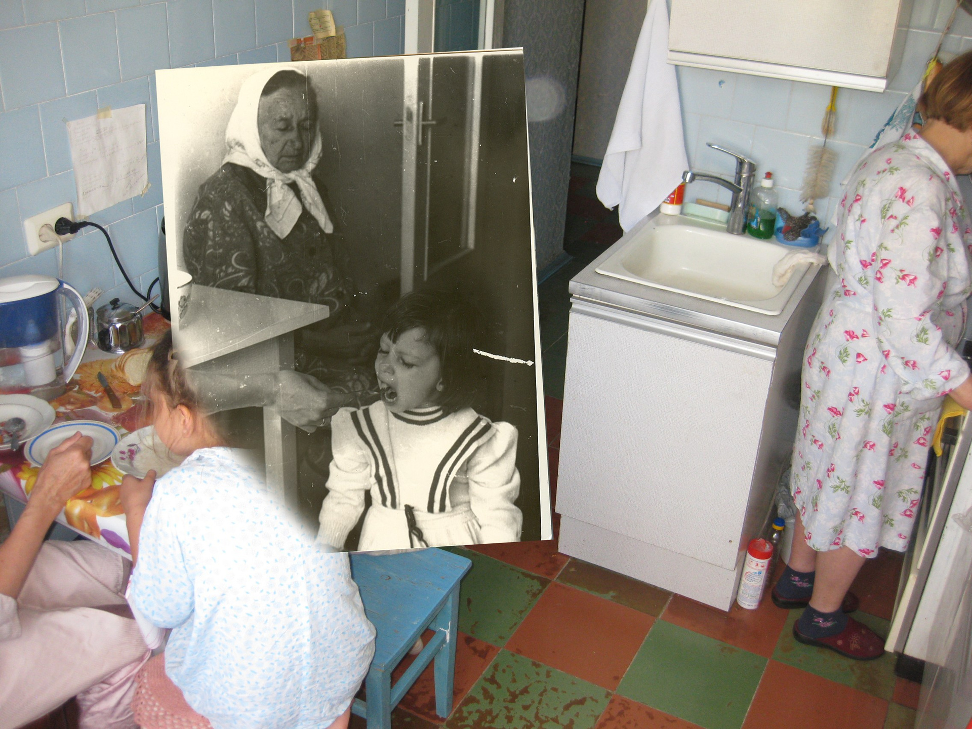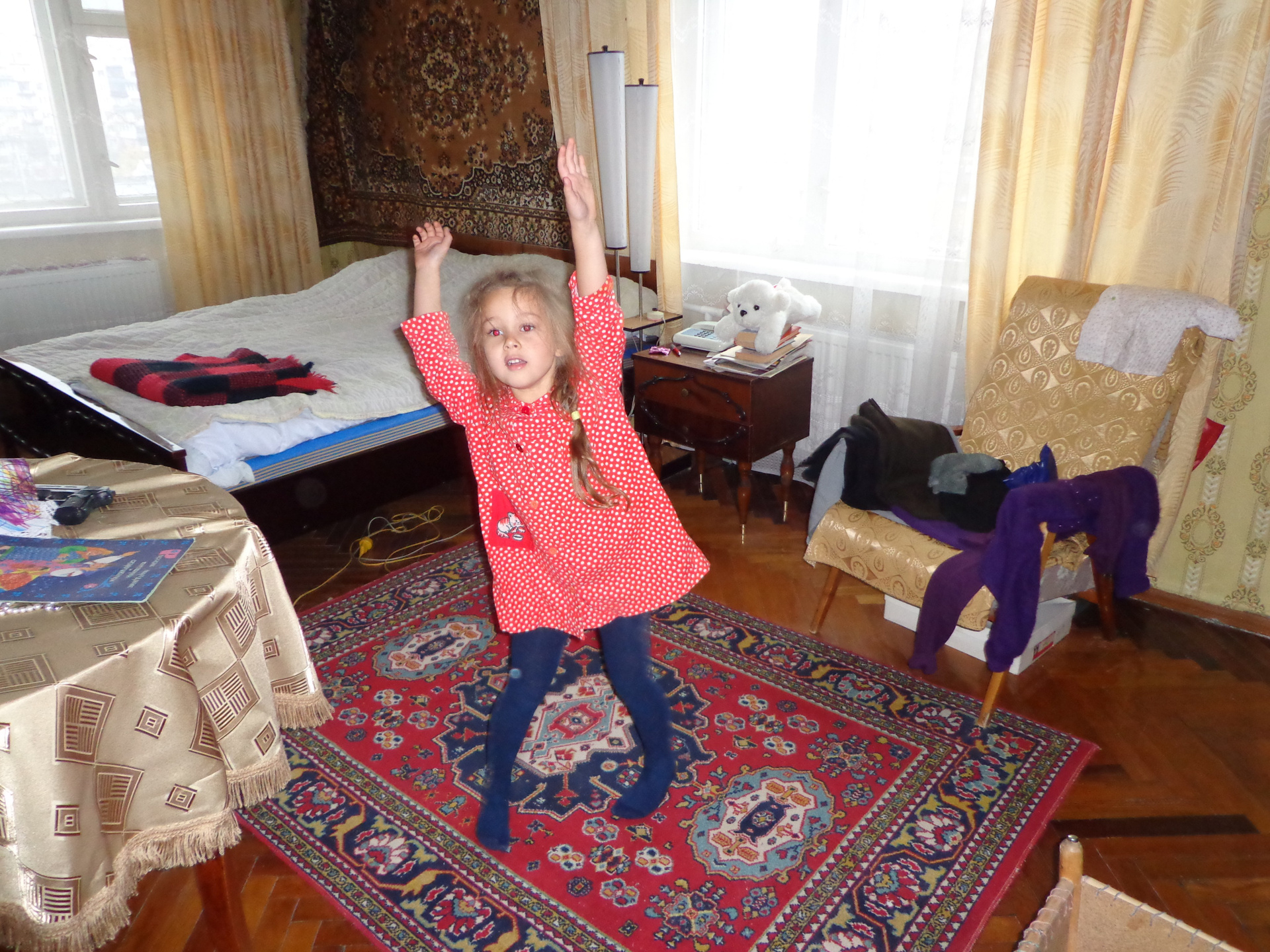 Совершенно неожиданная находка. В детстве я много проводила времени вместе с дедушкой, годами мы гуляли по Гражданскому проспекту в Ленинграде, путешествовали по Кавказу. Человек он был творческий, без конца сочинял для меня сказки, делал незапланированные подарки, придумывал игры и спортивные занятия. Еще у дедушки был фотоаппарат, он любил меня фотографировать. Я помню, что была у нас с ним одна фотосессия: я выступала дома, что-то пела, танцевала. Потом нарядилась в мамину свадебную шляпу и осуществила мечту: залезла под потолок в этой шляпе и позировала на фоне хрустальной бабушкиной люстры. Дедушка мне говорил, что темно для съемки, но я слушать не хотела. Это было примерно в 1993 году. Очень странно, но после я никогда не видела эти фотографии. Мой дедушка, Евский Петр Иванович, умер в 1998 году. Много лет бабушка жила одна, но в 2021 году мы продали квартиру в Ленинграде и перевезли бабушку в Черноголовку к маме. Бабушке уже 98 лет. Огромное количество вещей я перевезла к себе, в том числе у меня хранились дедушкины фотоаппараты — Зоркий и Зенит. Еще 3 года они лежали у меня на полке. И вот осенью 2024 года я решила проверить, рабочие они или нет, неожиданно в Зорком обнаружила пленку, причем поняла, что она отснятая. Каково же было мое удивление, когда на сканах после проявки я обнаружила ту самую фотосессию!!!